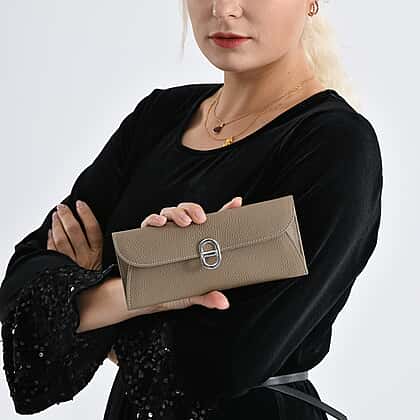 Genuine Leather RFID Protected Slimline Clutch - Taupe