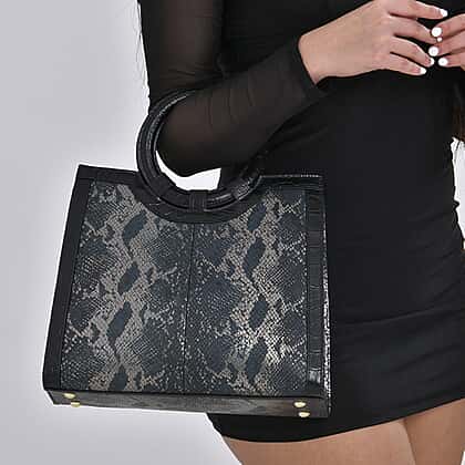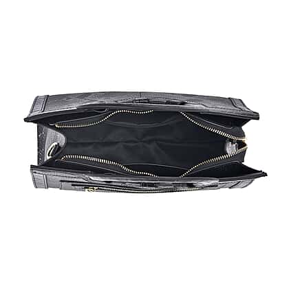 Genuine Leather Snakeskin Pattern Crossbody Bag (Size 31x14x26 cm) - Black and Black
