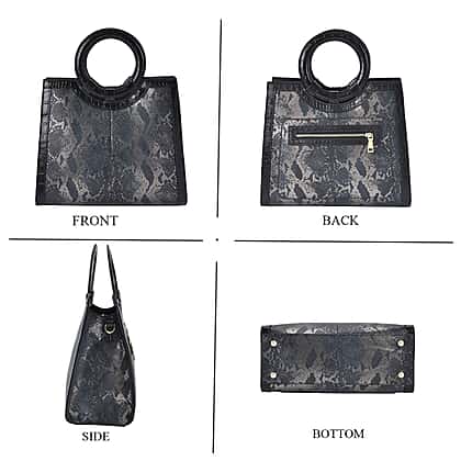 Genuine Leather Python Pattern Crossbody Bag With 2 Shoulder Straps - Black