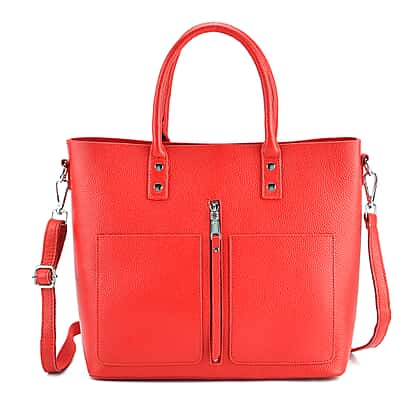 If you are looking for a bag that can get you excited and yet somehow feels timeless, then this hot red tote bag makes for a great choice. Made with genuine leather, this bag has a smooth, lustrous finish. It boasts of a spacious interior which is lined with durable polyester. It features two internal zip pockets and slip pockets to keep your things from keys to wallet in place. The best part about this bag is that it's very practical. It features a frontal zip pocket that can provide you quick access. It comes with a top sturdy handle and a detachable crossbody strap to seamlessly transition from work to leisure look.