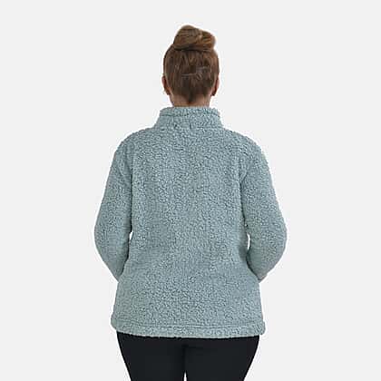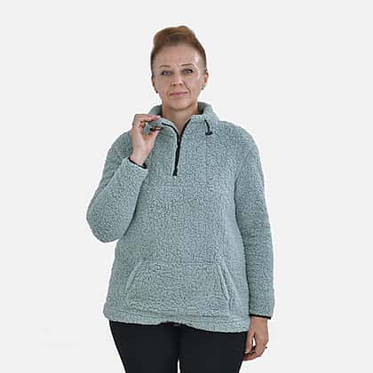 Half Zip Sherpa Sweatshirt With Handy Kangaroo Pocket - Blue