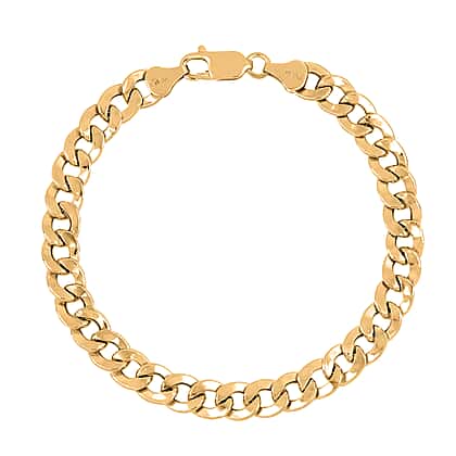 Fine Italian Jewellery - Handmade Sterling Silver Curb Bracelet in Yellow Gold Overlay (Size - 7.5)