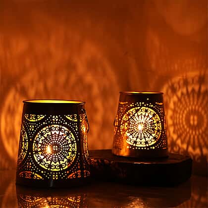 Set of 2 - Stunning Metal Etched Mandala Pattern Hanging Lantern (Size 15x15x13 cm) - Black