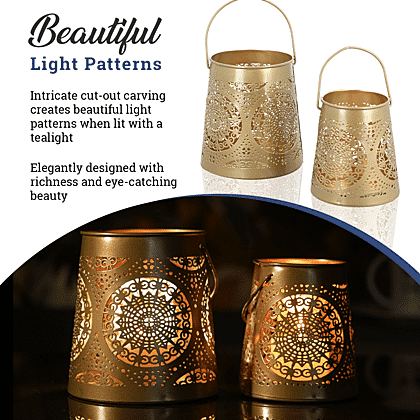 Set of 2 - Stunning Metal Etched Mandala Pattern Hanging Lantern (Size 15x15x13 cm) - Gold