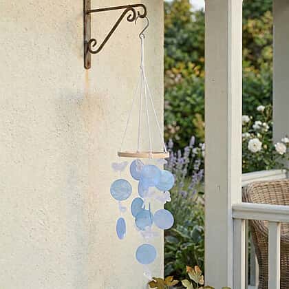 Add a peaceful touch to your surroundings with the Hanging Wind Chime in blue. This beautifully crafted chime features soft blue accents that move gracefully in the wind, producing a light, melodic sound. The 30 cm chime is perfect for small spaces, such as windows, porches, or gardens, where it can bring calm and serenity. The subtle design makes it an ideal addition to any home decor, creating a relaxing atmosphere wherever it's placed.