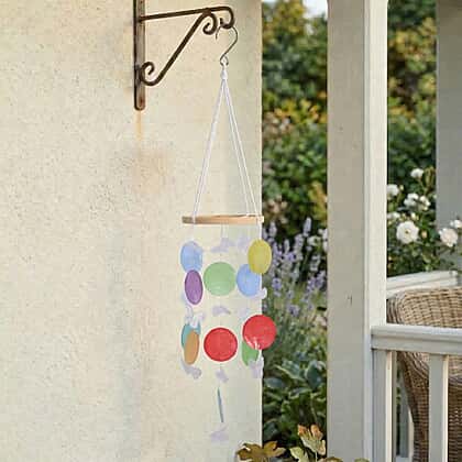 Add a pop of colour to your space with the Hanging Wind Chime in multi-colour. Featuring a mix of vibrant coloured discs, this 35 cm chime creates a cheerful and calming atmosphere as it produces a gentle, melodic sound when the wind flows through. Perfect for gardens, patios, or any space that needs a bit of colour and serenity, this chime is a playful yet peaceful addition to your decor. Its simple yet vibrant design brings joy to your environment while enhancing your outdoor or indoor setting.