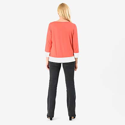 Hem & Cuff Color Block Top (Size 16 to 18) - Red & Ivory