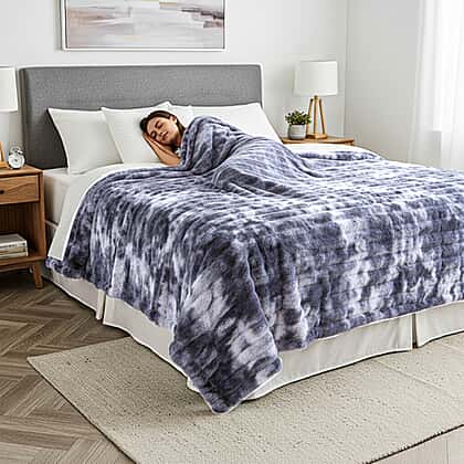 Sumptuously Super Soft Double Layered Sherpa Super Large Faux Rabbit Fur Blanket 710 GSM (200 x 150 cm) - Blue & White