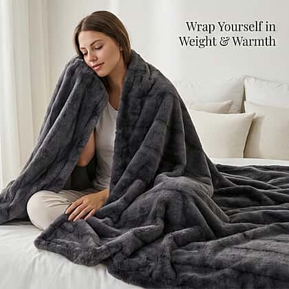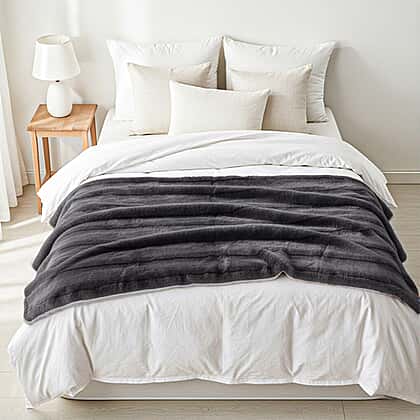 The Heaviest Weight Blanket at TJC - 1000 GSM Sumptuous Faux Rabbit Fur Double Layer Blanket With Thermal Lining Faux Mink Backing For Insulation (180x150 Cm) - Grey