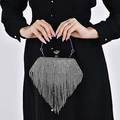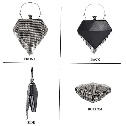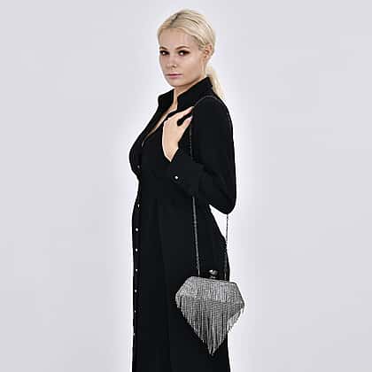 Captivate the room with the Sheeny Diamond Shape Crystal Studded Tassel Evening Clutch Bag. This exquisite accessory is a jewel adorned with sparkling crystals and a chic tassel that adds a dash of glamour. Accompanied by a sleek, long strap for versatile wear, this clutch is ideal for nights when elegance is paramount. It's not just a bag; it's the highlight of your ensemble, a beacon of sophistication.