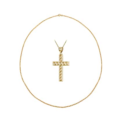 Italian Closeout - 9K Gold Greek Key Cross Belcher Necklace (18 inch) Gold Wt. 2.10 Grams