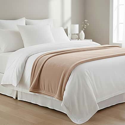 BIG CLOSEOUT OFFER - Ultra Luxurious Soft Velvet Touch Throw (Size 150 x 200 Cm) - Beige