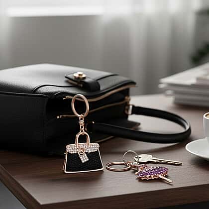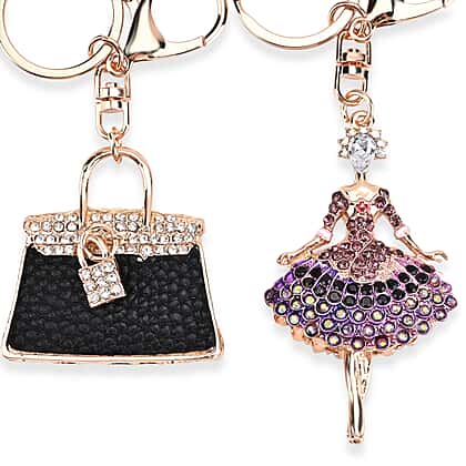 Set of 2 Austrian Crystal Sparkling Ballet Girl & Handbag Keychains- Charms - Purple