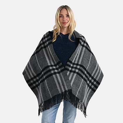 La Marey 100% Merino Wool Checked Scarf (190 x 50 cm) - Black