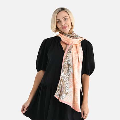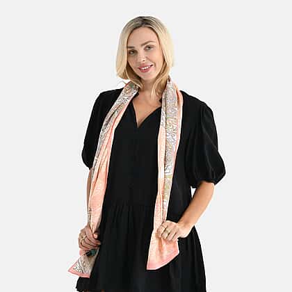 Refine your accessory collection with the la marey 100% mulberry silk flower print scarf in brown, designed to add warmth and beauty to any outfit. Featuring a delicate floral pattern enhanced by soft, earthy tones and subtle contrasting borders. Crafted from pure mulberry silk, it offers a smooth, lightweight texture with a natural sheen. Measuring 170 x 55 cm, it can be styled as a scarf, wrap, or draped shawl for versatile wear. The rich brown hues pair beautifully with both neutral and bold ensembles, making it a timeless addition for every season.