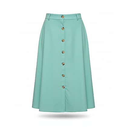Bring subtle sophistication to your outfits with this jade green midi skirt by La Marey. Designed in a classic A-line silhouette, it drapes gracefully below the knee and features a button-front detail that’s both stylish and convenient. Crafted from soft linen in a non-stretch woven fabric, it delivers a structured yet comfortable feel. Two side pockets offer practicality without disrupting the clean lines. Perfect for pairing with a crisp blouse or casual tee, this high-waisted skirt is a lovely blend of ease and polish for everyday wear.