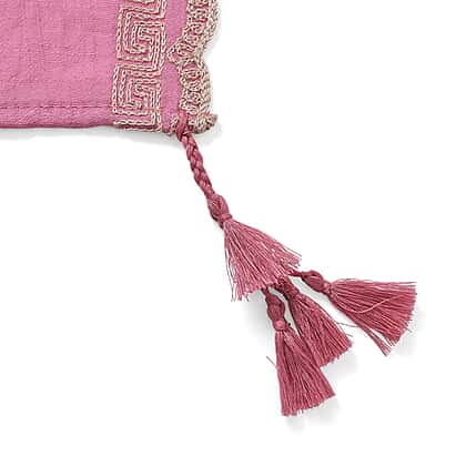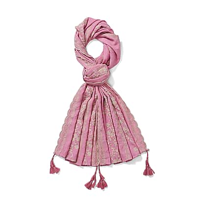 La Marey Cotton Blend Vine & Floral Pattern Embroidered Sarong Scarf with Tassels (Size 180x67cm) - Blue