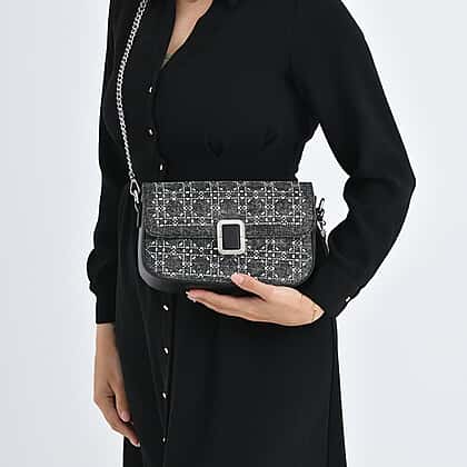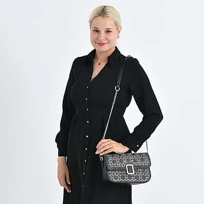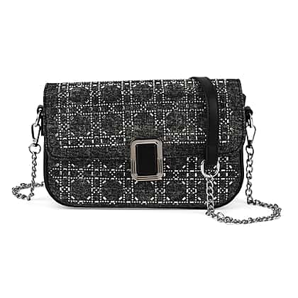LA MAREY Designer Sling Handbag with Elegant Silver-Tone Chain Strap - Black