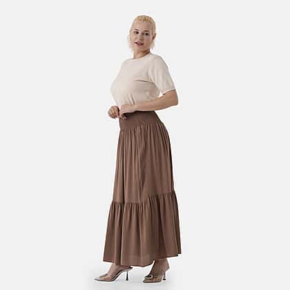 Bring comfort and style together with the La Marey Elastic Waist Maxi Skirt, designed for easy, everyday wear. In a classic brown finish, this flowing silhouette offers a flattering drape that moves beautifully with every step. The elasticated waistband ensures a comfortable and flexible fit, making it ideal for all-day wear without restriction. Its maxi length adds an stunning touch, while the lightweight fabric enhances breathability and ease. Perfect for pairing with casual tops or dressing up with more refined pieces, this skirt is a versatile wardrobe staple suited for a variety of occasions.