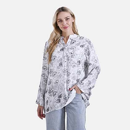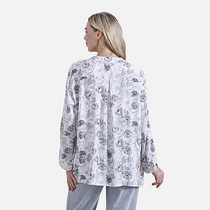 Refined yet relaxed, the La Marey grey floral print blouse is your answer to versatile, comfortable fashion. Blending 90% viscose and 10% linen, the fabric offers a cloud-soft feel and natural softness. The understated grey hue and romantic floral design create a polished look perfect for both casual brunches and quiet evenings. Its long sleeves and V-neck cut add to its classic appeal, while the loose fit ensures easy styling. Pair with white or black bottoms for a balanced, elegant ensemble.