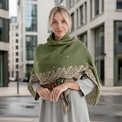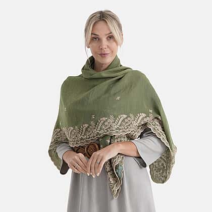 La Marey Embroidery Cotton Blend Scarf (130 x 130cm) - Green