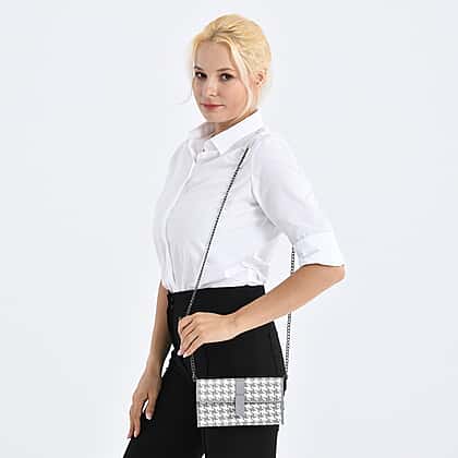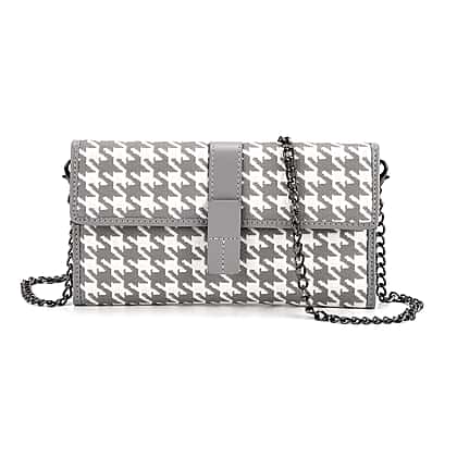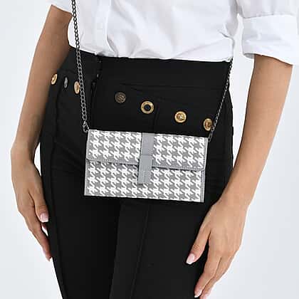 La Marey Genuine Leather Checkered Pattern RFID Crossbody Wallet - Grey