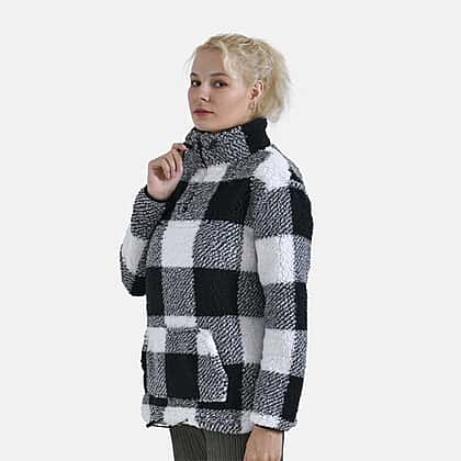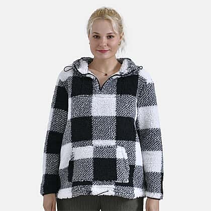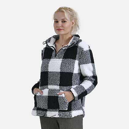 Stay warm in style with the La Marey half zip sweatshirt, now available in a black and white checkered pattern. Made from high-quality polyester, it offers exceptional softness and warmth, ideal for chilly days. The half-zip neckline ensures easy dressing, while a convenient kangaroo pocket keeps hands cosy and your essentials secure. Whether you're enjoying a relaxed day indoors or out for a casual meet-up, this sweatshirt pairs seamlessly with leggings, joggers, or jeans. Comfortable yet stylish, it’s the ultimate addition to your casual wardrobe, providing warmth, practicality, and a classic look that's always on trend.