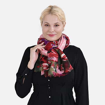 Make a statement with the La Marey merino wool floral scarf, featuring a striking floral print in rich red and pink tones. Crafted from soft and lightweight merino wool, this scarf provides warmth without feeling heavy, making it suitable for all seasons. The elegant drape and smooth texture allow for versatile styling—wear it as a wrap, shawl, or classic neck scarf. The vibrant colours and detailed design add a touch of sophistication to any outfit. Easy to maintain, this machine-washable scarf is a must-have for anyone looking to add a stylish accessory to their collection.