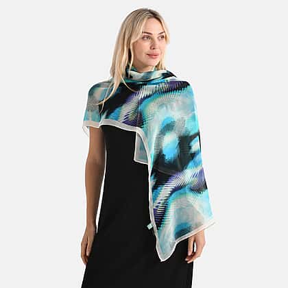 La Marey Mulberry Silk Printed Scarf (175 x 65cm) - Blue Black