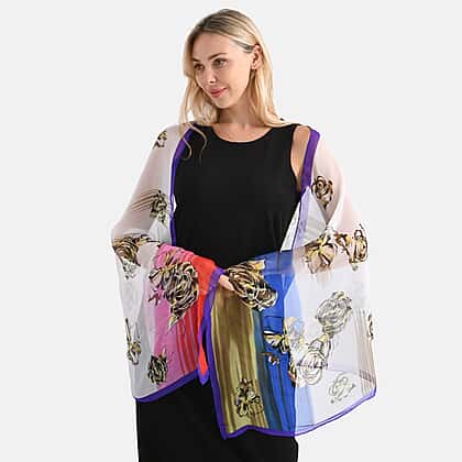 La Marey Mulberry Silk Printed Scarf (175 x 65cm) - Multi Colour