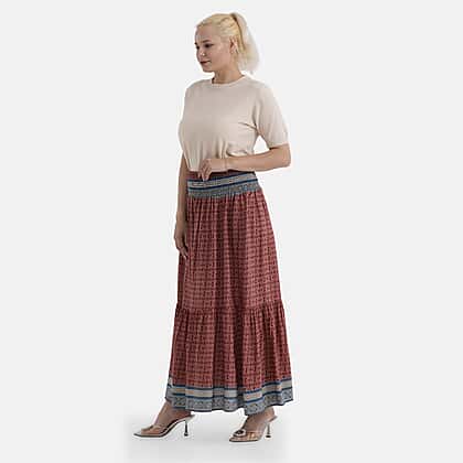 La Marey Abstract Print Summer Maxi Skirt (One Size) - Red