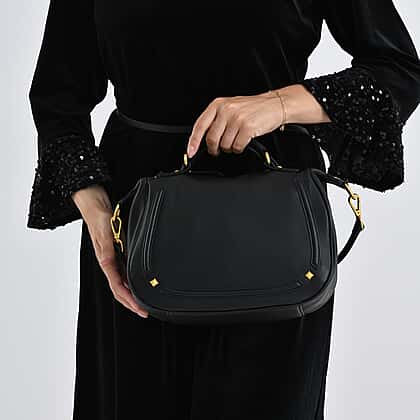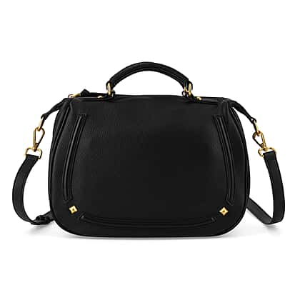 Step into timeless sophistication with this La Marey Signature genuine Italian leather handbag in classic black. Designed with a structured profile, elegant top handle, and detachable crossbody strap, it offers effortless versatility for everyday or occasion wear. The durable leather exterior pairs beautifully with gold-tone hardware, creating a refined finish that elevates any outfit. Inside, the polyester-lined interior includes zipped compartments and a slip pocket to keep belongings organised. With convenient exterior zip sections and gift box presentation, this handbag delivers enduring style, organisation, and confidence wherever your day takes you.