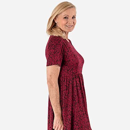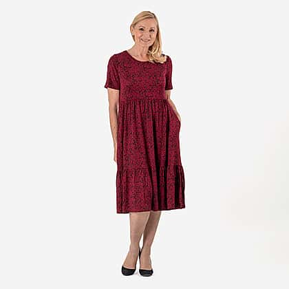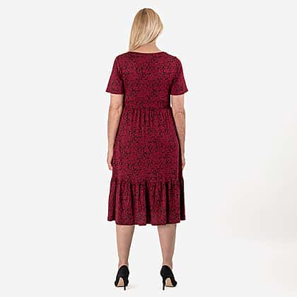 Add a touch of romance to your wardrobe with the La Marey Flower Print Midi Dress in rich maroon. Designed in a soft, stretchy blend of 96% viscose and 4% elastane, this dress offers a flattering fit with lasting comfort. Featuring a classic round neckline and short sleeves, it’s effortlessly wearable for everyday plans or casual evenings. The bodice gathers at the waist, flowing into a tiered flounce hemline that moves gracefully with every step. Finished with handy side pockets and an all-over floral print, this dress strikes the perfect balance between practicality and charm for the modern, style-conscious woman.