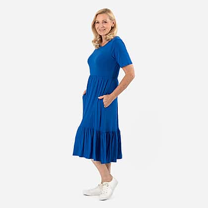 Bright cobalt colour gives this La Marey Women's Tiered Stretch Waist Midi Dress a lively, uplifting feel that still stays wonderfully wearable. Made from a soft viscose-elastane blend, it moves easily with the body, while the tiered skirt brings gentle flow and a feminine touch. The stretch waist creates a comfortable fit that adapts to you, and the side pockets add practicality for daily outings. Short sleeves keep the style light, and the midi length falls neatly below the knee for easy elegance. It’s an ideal choice when you want something cheerful, comfy and simple to throw on.