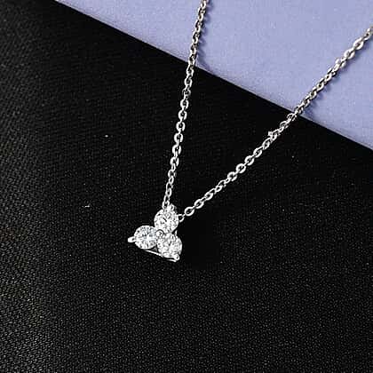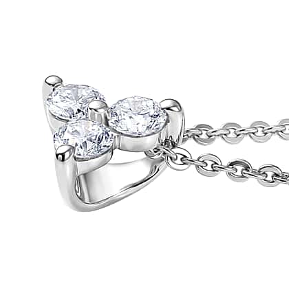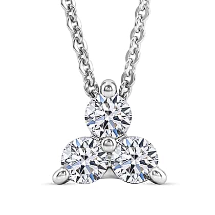 LUXURIANT Lab Grown Diamond Trilogy Pendant with Chain (Size 20) in Rhodium Overlay Sterling Silver