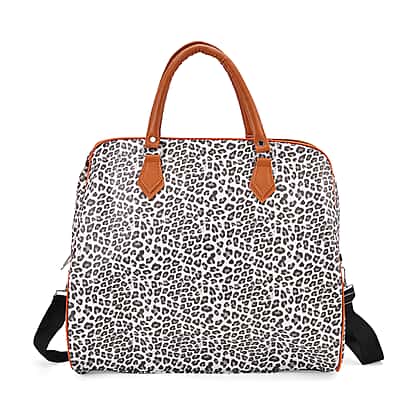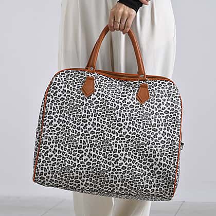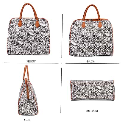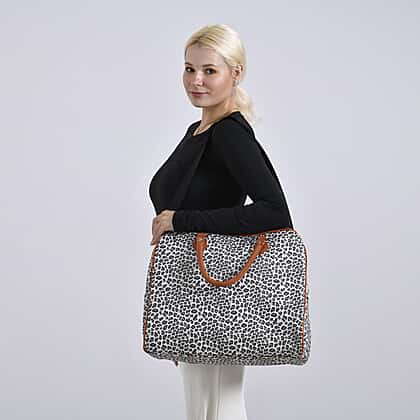 Leopard Pattern Tote Bag with Handle Drop & Detachable Shoulder Strap - Grey