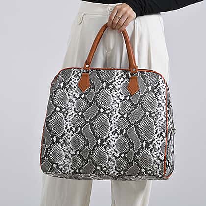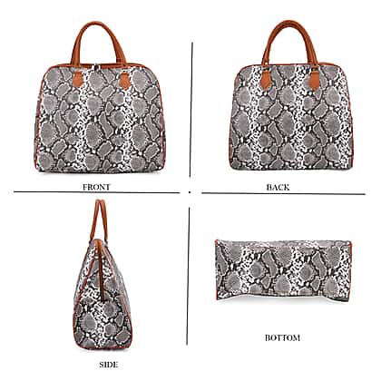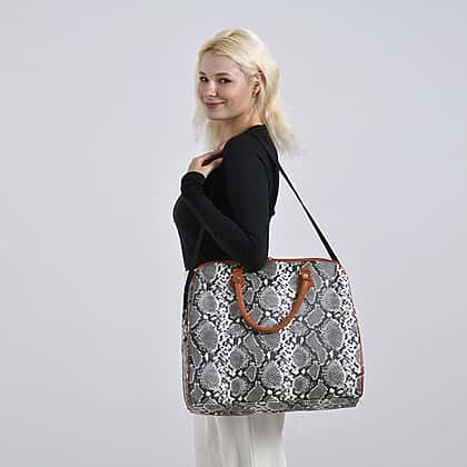 Snake Pattern Tote Bag with Handle Drop & Detachable Shoulder Strap - Grey