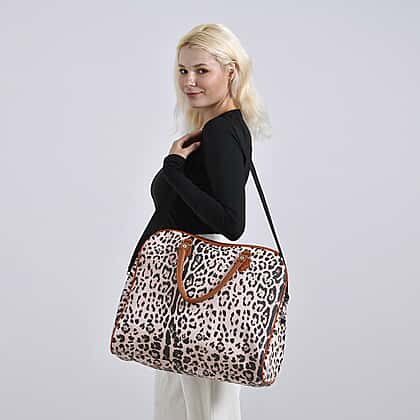 Snake Pattern Tote Bag with Handle Drop & Detachable Shoulder Strap - Peach