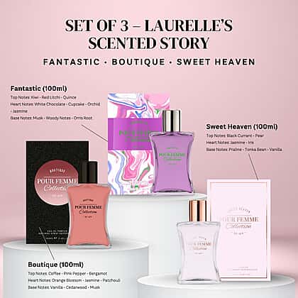Laurelle’s Scented Story - Pour Femme Collection Fantastic EDP, Boutique EDP and Sweet Heaven EDP 100ml each