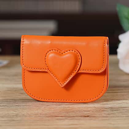 Designer Inspired Genuine Leather Heart Detail Mini Wallet - Orange