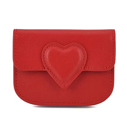 Designer Inspired Genuine Leather Heart Detail Mini Wallet - Red