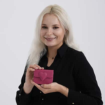 Designer Inspired Genuine Leather Heart Detail Mini Wallet - Hot Pink