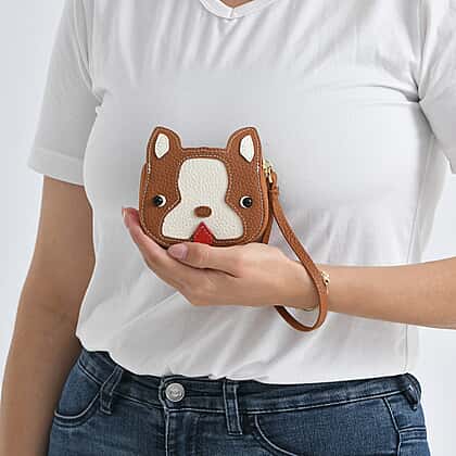 Genuine Leather RFID- Blocking Boston Terrier Wallet with Clasp - Tan