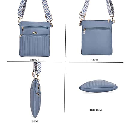 Lifestyle Crossbody Bag with Pleated Detail & Patterned Strap - Denim Blue