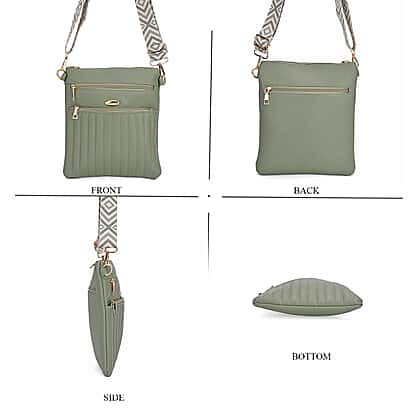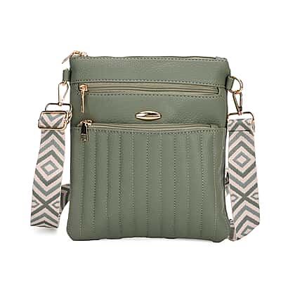 Lifestyle Crossbody Bag with Pleated Detail & Patterned Strap - Green