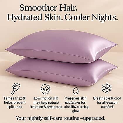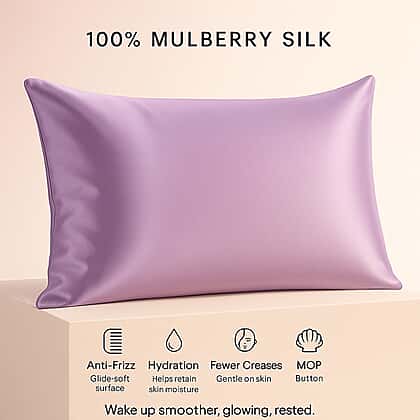 LIVMORE 100% Mulberry Silk Luxury Pillow Cover with MOP Button Closure - Light Purple