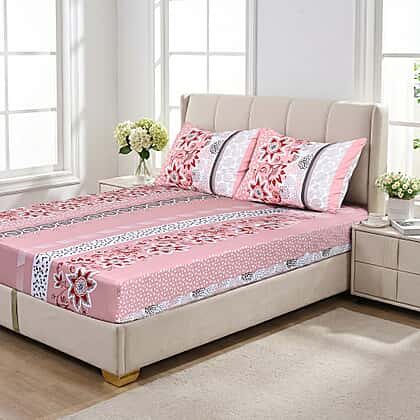 Add a soft and refreshing touch to your bedroom with the LIVMORE 3-Piece Floral Print Fitted Sheet Set in light pink. The fitted sheet features a decorative floral and patterned design that brings gentle colour and charm to your bedding. Designed for a double bed, the fitted sheet measures 190 x 135 cm and fits securely around the mattress to help keep the sheet neatly in place. The set also includes two matching pillowcases that complete the coordinated look. Suitable for everyday use, this bedding set combines decorative style with practical comfort, helping create a welcoming and well-dressed bed.