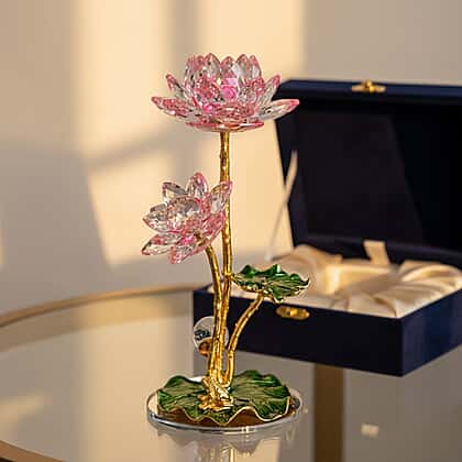 Introduce a vibrant decorative accent to your space with the Livmore crystal lotus flower ornament in pink and green. Designed with beautifully faceted pink crystal petals and detailed green leaves, this eye-catching piece reflects light to create a radiant sparkle. The gold-tone stem and base enhance its striking appearance, making it ideal for coffee tables, display cabinets or shelves. Inspired by the symbolism of the lotus, it represents positivity and renewal while adding artistic charm to your interior. A distinctive home accessory that combines colour, craftsmanship and visual appeal in one stunning design.