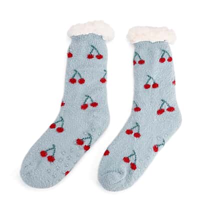 LIVMORE Cherry Print Sherpa-Lined Thermal Fleece Socks (One Size) - Light Blue