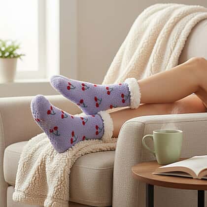 LIVMORE Cherry Print Sherpa-Lined Thermal Fleece Socks (One Size) - Purple